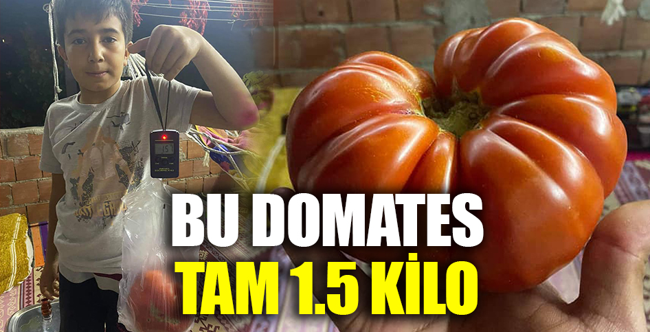 Denizli'nin Çameli ilçesine bağlı Yeni Mahallesi'nde ikamet etmekte olan Anne Gülbeyaz Ongun ve oğlu Coşkun Atakan Ongun bahçelerinde bir adet 1.5 kilogramlık domates çıkardı.