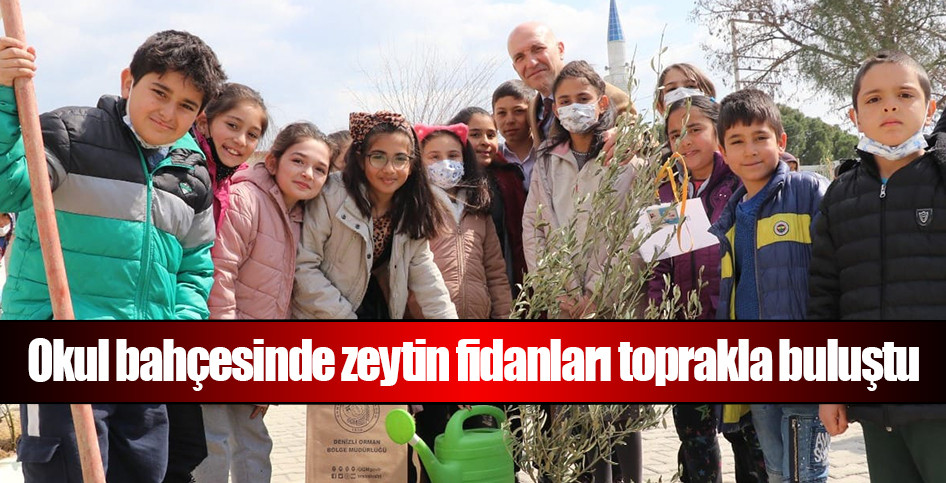 Okul bahçesinde zeytin fidanları toprakla buluştu